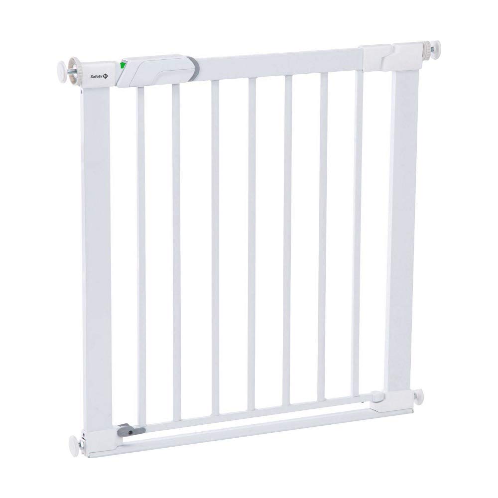 La barrera de seguridad metálica para bebés Easy Close de Safety 1st con SecureTech combina la simplicidad y la seguridad en una barrera con forma de herradura e instalación a presión. El indicador SecureTech del nuevo picaporte permite una instalación segura y un cierre firme de la barrera para bebé. El diseño meticuloso de esta barrera de seguridad para bebé también facilita la instalación y el reajuste sin esfuerzo. Es muy cómoda porque se abre en ambas direcciones y su mecanismo de doble bloqueo supone una seguridad extra. El nuevo diseño del picaporte hace que sea fácil de abrir para los padres, pero difícil para los niños. Esta barrera de escalera es apta para huecos de 73 a 80 cm, pero se puede ampliar hasta 136 cm con extensiones que se venden aparte.